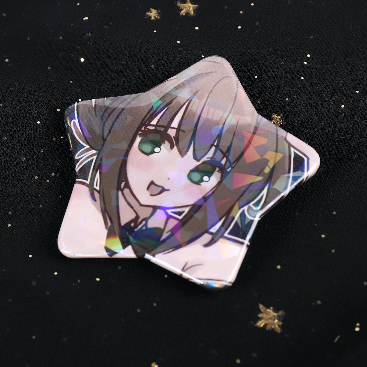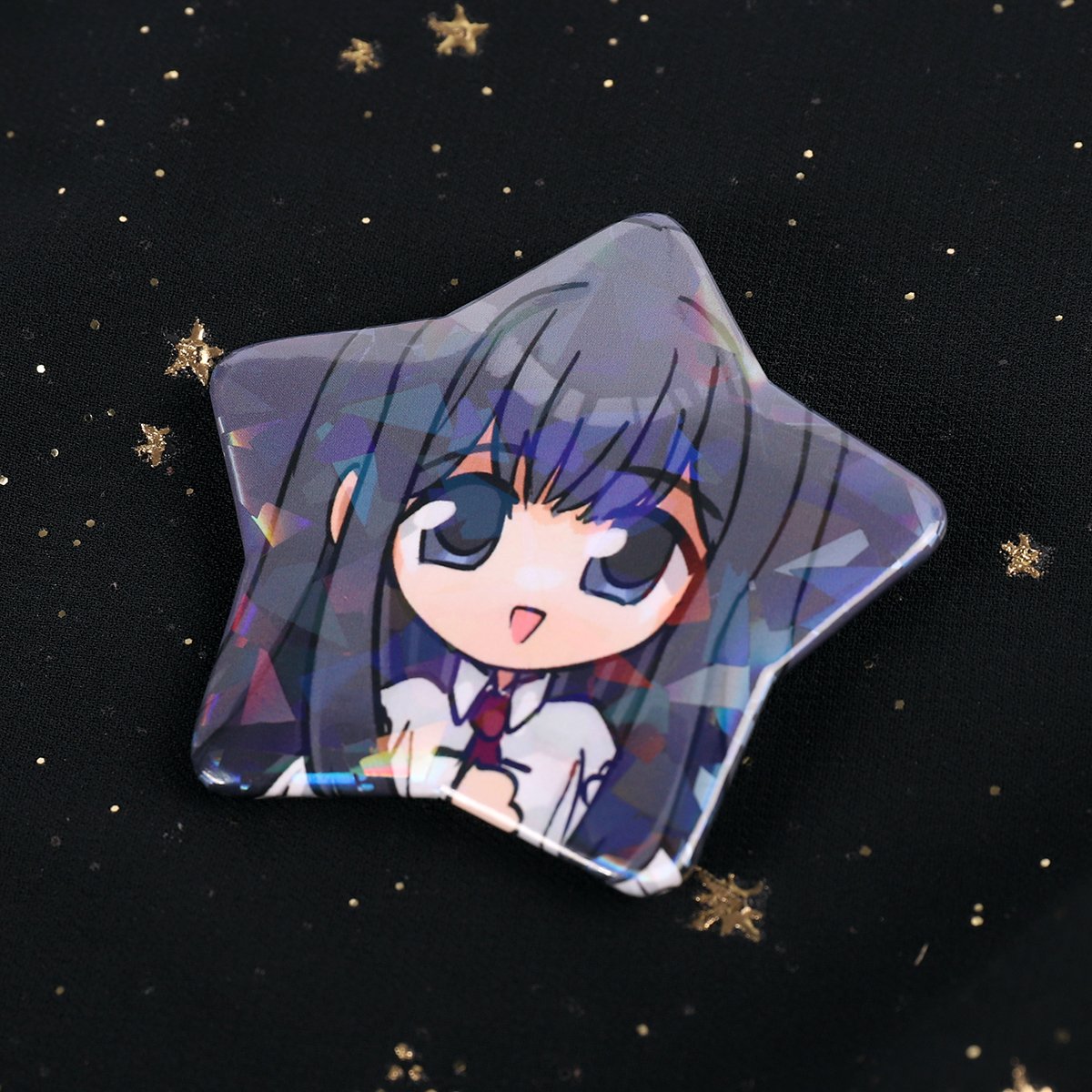 Holographic star badges of Kimika and Zakuro from the psychological horror visual novel, Subarashiki Hibi / Wonderful Everyday.
